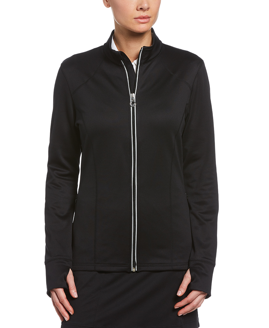 6.7 oz 95% polyester 5% spandex fleece knit fabric. Opti-Dri technology transfers moisture away from the body to keep you cool and dry. UV Repel technology keeps skin safe from the sun’s harmful rays. UPF 50. Stretch fabric moves with you to increase your range of motion. Thermal fabric provides an extra layer of warm comfort. Full zip with Callaway signature zipper pull. In-seam open side pockets. Vertical zipper placket pocket detail on left chest. Contrast embroidered Callaway logo on right sleeve.