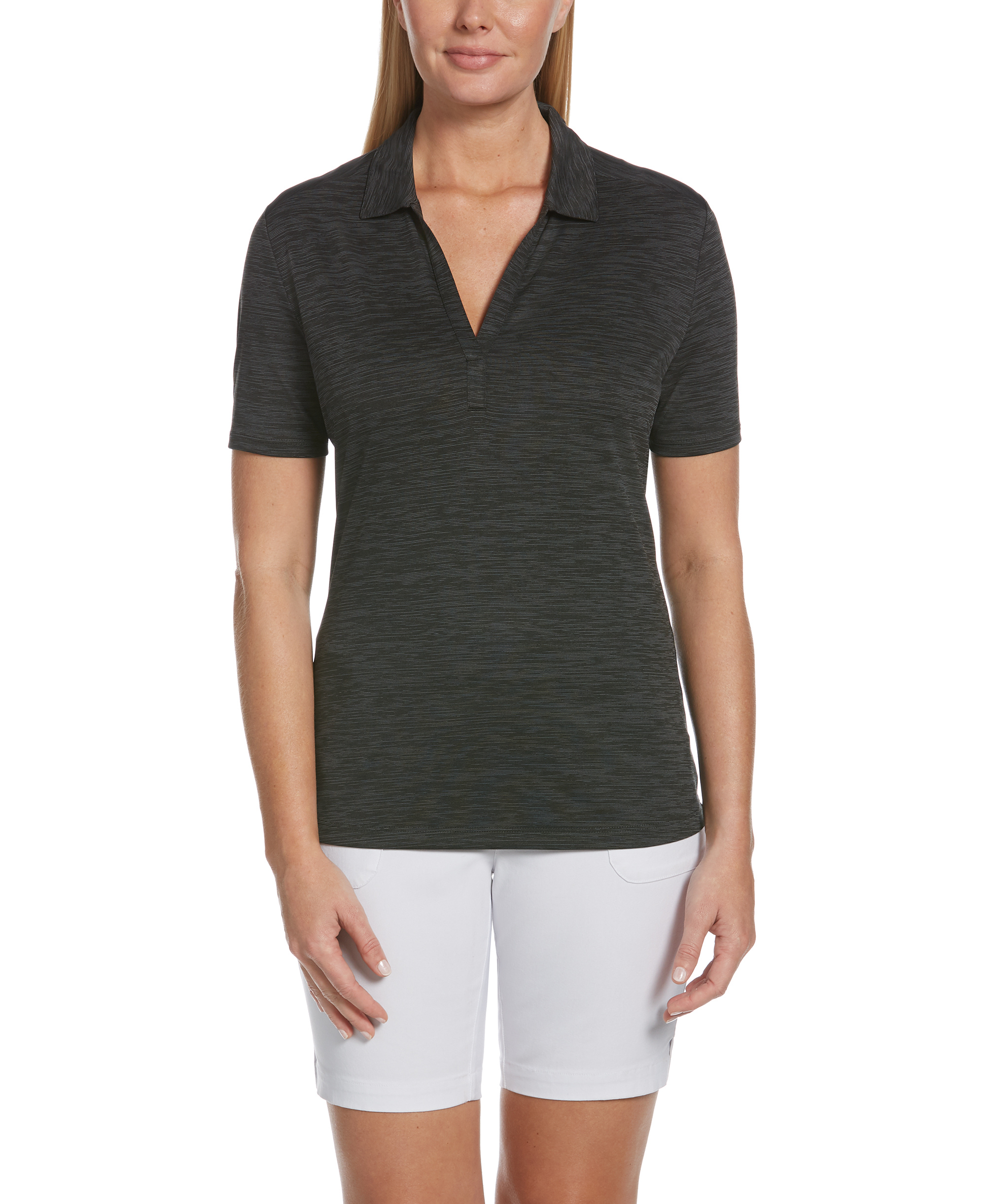 5 oz 100% Polyester jersey knit fabric. Opti-Dri technology transfers moisture away from the body to keep you cool and dry. UV Repel technology keeps skin safe from the sun's harmful rays UPF 15+. 3-button placket, self fabric collar, open sleeve. Double needle hemmed bottom with side vents. Heat Seal Label provides Tag-Free Comfort. Tonal embroidered Callaway logo on right sleeve.