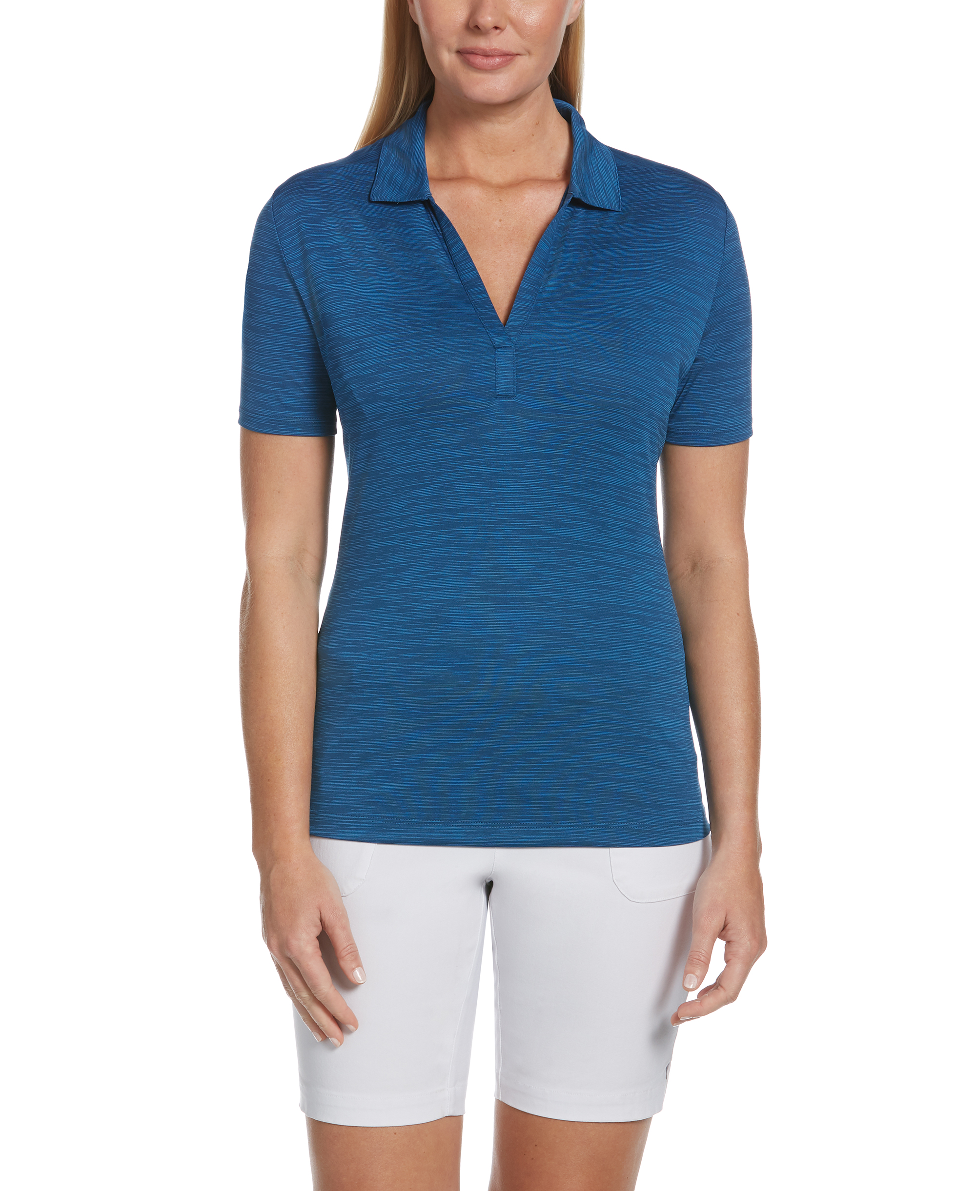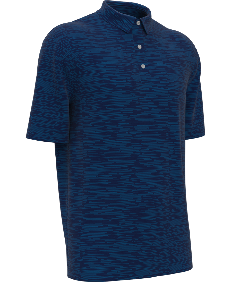 5 oz 100% Polyester jersey knit fabric. Opti-Dri technology transfers moisture away from the body to keep you cool and dry. UV Repel technology keeps skin safe from the sun's harmful rays UPF 15+. 3-button placket, self fabric collar, open sleeve. Double needle hemmed bottom with side vents. Heat Seal Label provides Tag-Free Comfort. Tonal embroidered Callaway logo on right sleeve.