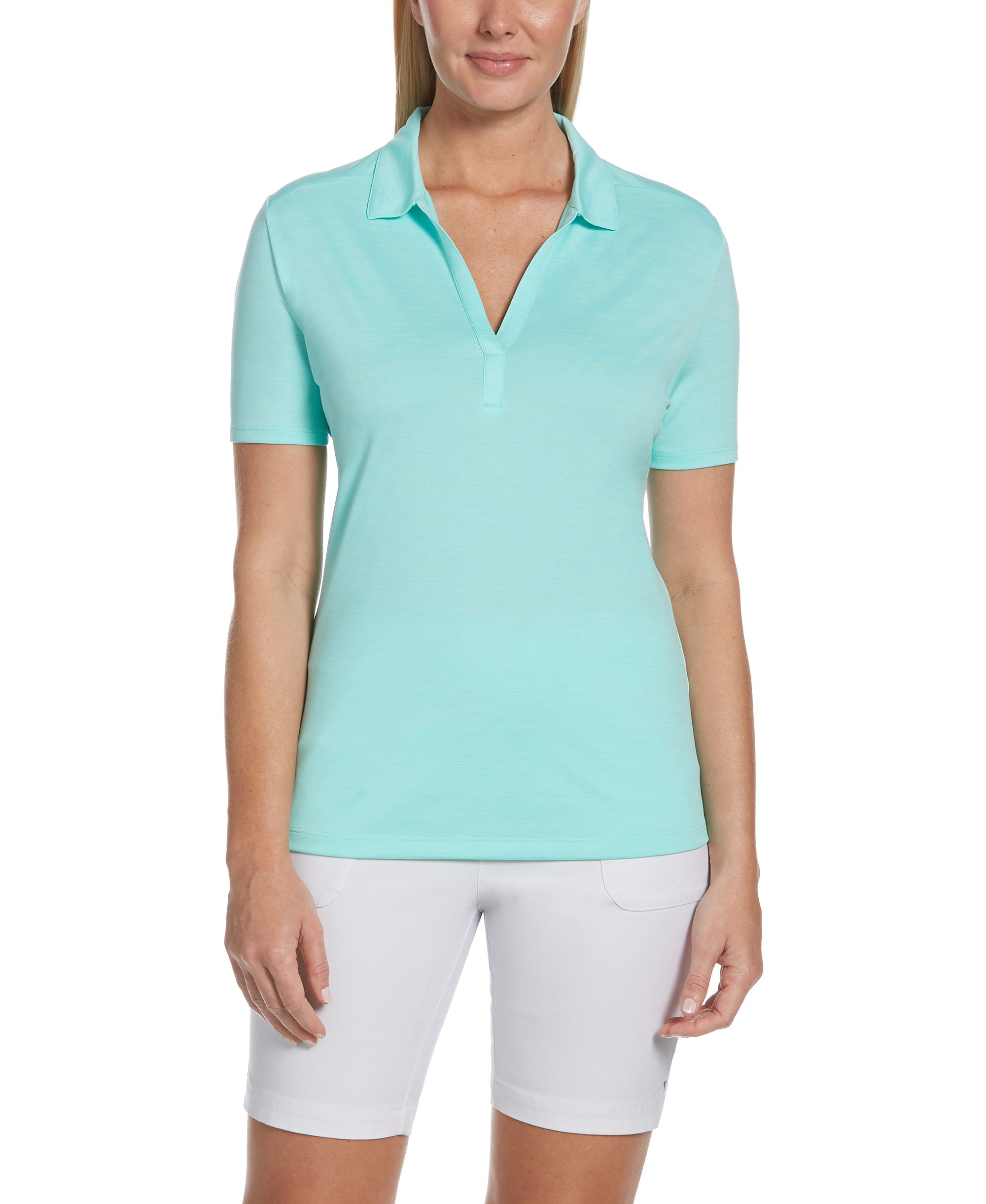 5 oz 100% Polyester jersey knit fabric. Opti-Dri technology transfers moisture away from the body to keep you cool and dry. UV Repel technology keeps skin safe from the sun's harmful rays UPF 15+. 3-button placket, self fabric collar, open sleeve. Double needle hemmed bottom with side vents. Heat Seal Label provides Tag-Free Comfort. Tonal embroidered Callaway logo on right sleeve.